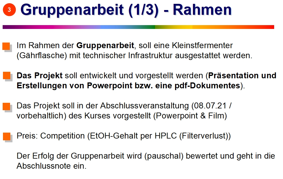 Der Erfolg der Gruppenarbeit wird (pauschal) bewertet und geht in die Abschlussnote ein