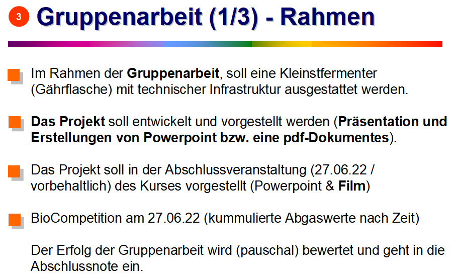 Der Erfolg der Gruppenarbeit wird (pauschal) bewertet und geht in die Abschlussnote ein