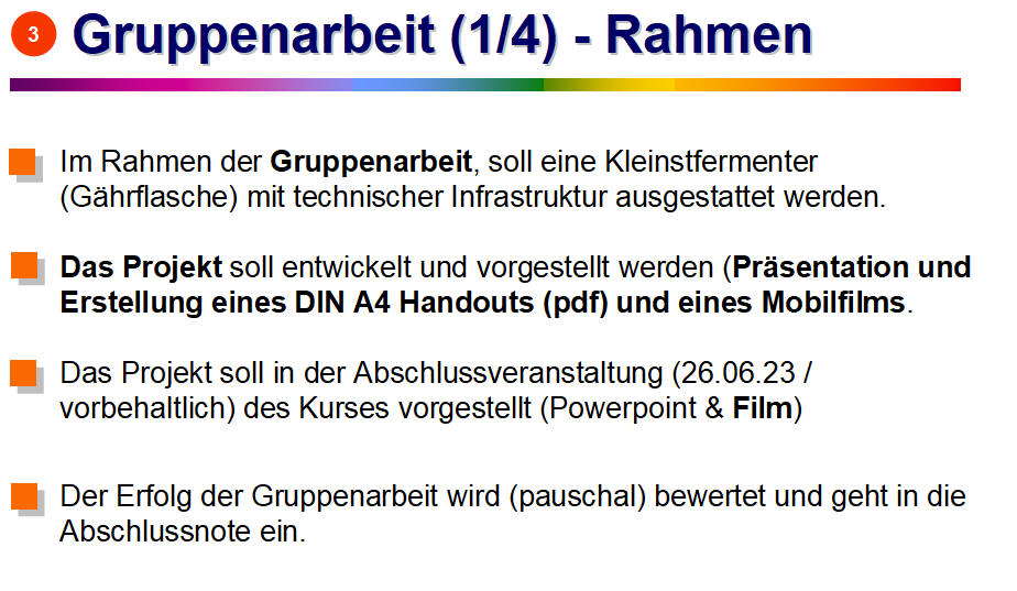 Der Erfolg der Gruppenarbeit wird (pauschal) bewertet und geht in die Abschlussnote ein