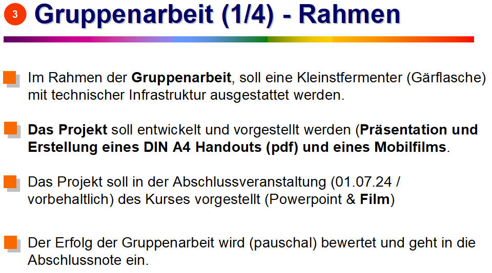 Der Erfolg der Gruppenarbeit wird (pauschal) bewertet und geht in die Abschlussnote ein