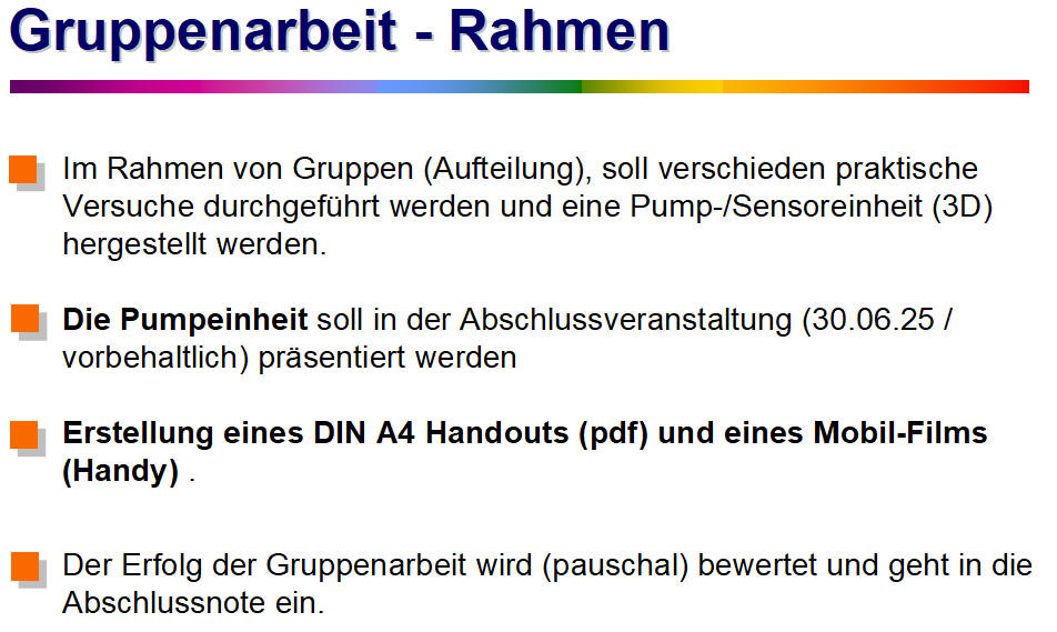 Der Erfolg der Gruppenarbeit wird (pauschal) bewertet und geht in die Abschlussnote ein